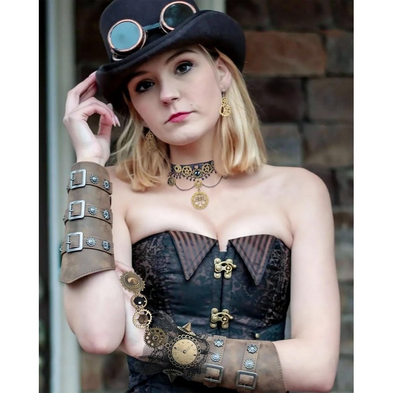 SEPWGUMD Steampunk Accessories Gothic Women's Steampunk Accessories Set for Women, Gothic Jewellery Set, Women's Steampunk Jewellery Collection (3 Pieces)