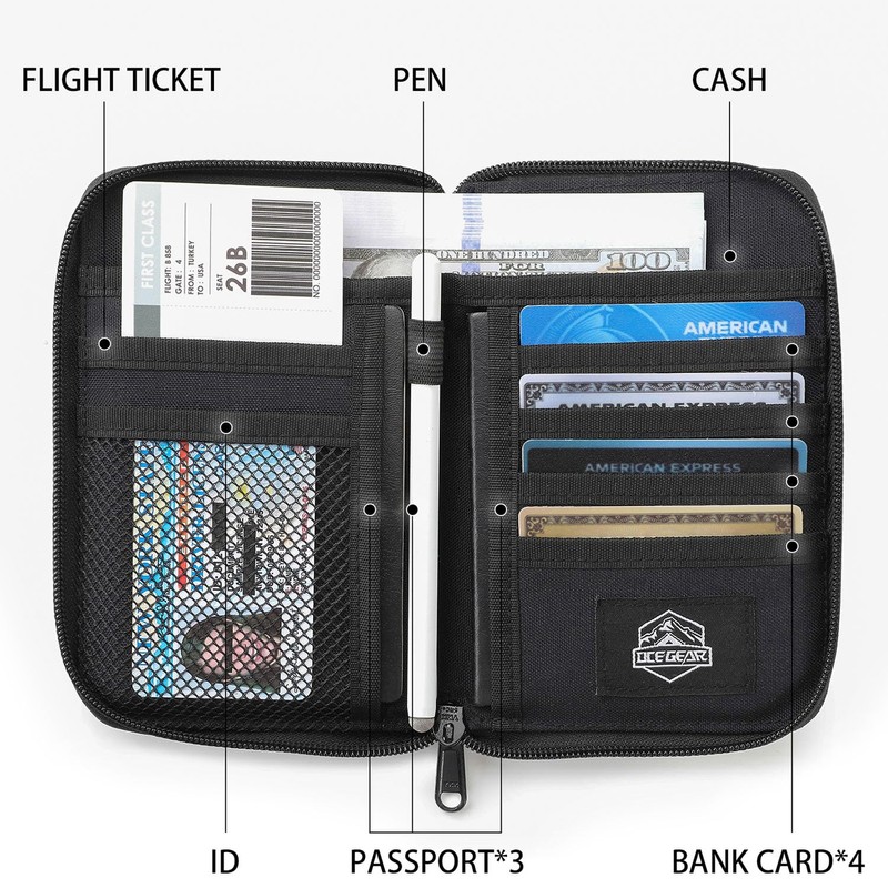 - ✔️ LARGE CAPACITY DESIGN - The passport wallet with internal multiple pockets for storing 3 passports, 4 credit cards, boarding cards, tickets, coins, money, cash, pen and other documents, etc. It also features two handy exterior pockets designed to hold your mobile phone and boarding card. With a removable wristlet strap, keep everything handy and convenient.