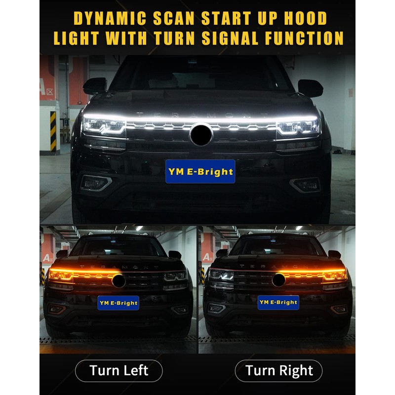 - 【Dual Colors+Turn Signal Function】As running light,the hood light strip is White when driving,it is Sequential flowing yellow While turning Right/Left.It Synchronize with turn signal lamps.