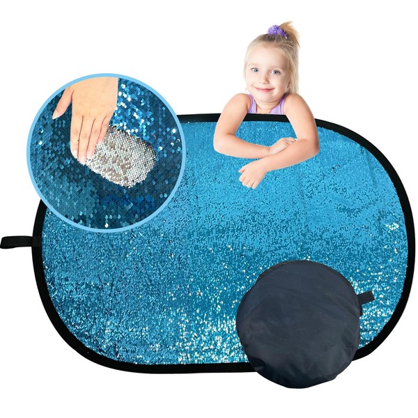 Sequin Fabric Material Wall, 70 x 102 cm, Graffiti Fabric for Children, Reversible Glitter Fabric with Storage Bag (Blue)