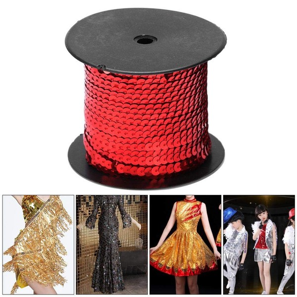 Sequins Paillette Roll, 100 Yards 6mm Flat Sequin Trim Sequin Ribbon for DIY Sewing Crafts Projects Embellishments Costume Accessories(Red)