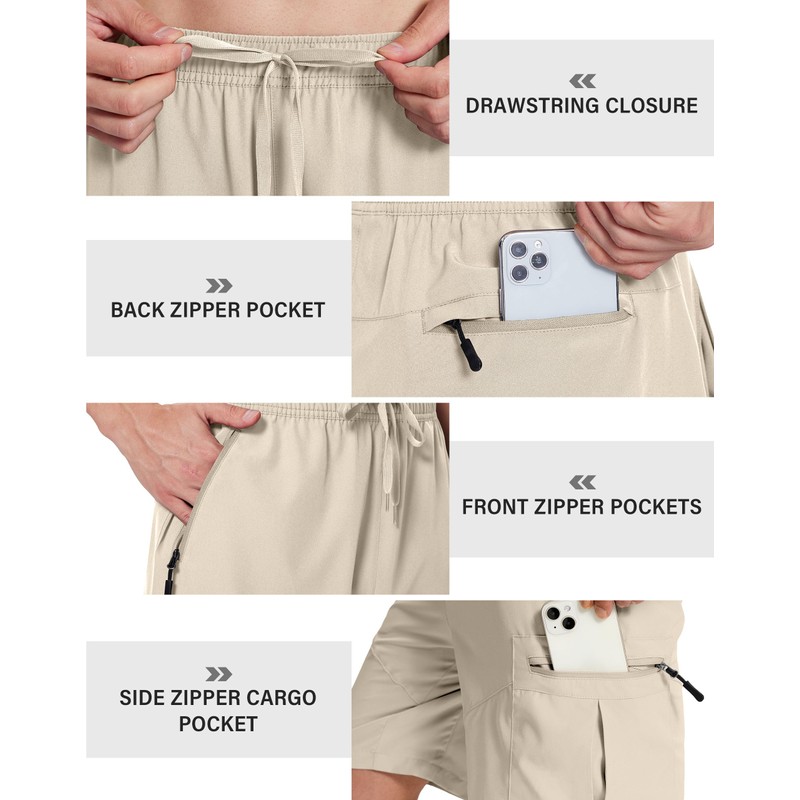 - 5 Zipper Pockets: Men's lightweight hiking shorts have 2 hand zipper pockets, 2 zipper cargo pockets, 1 back zipper pockets. Large capacity design of men's hiking shorts can hold more of your valuables.