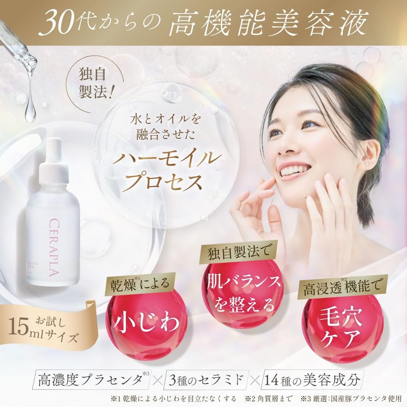 Serapra Serapra Serum 0.5 fl oz (15 ml), Ceramide, Placenta, Additive-free, Vitamin C Derivative, EGF, Sensitive Skin