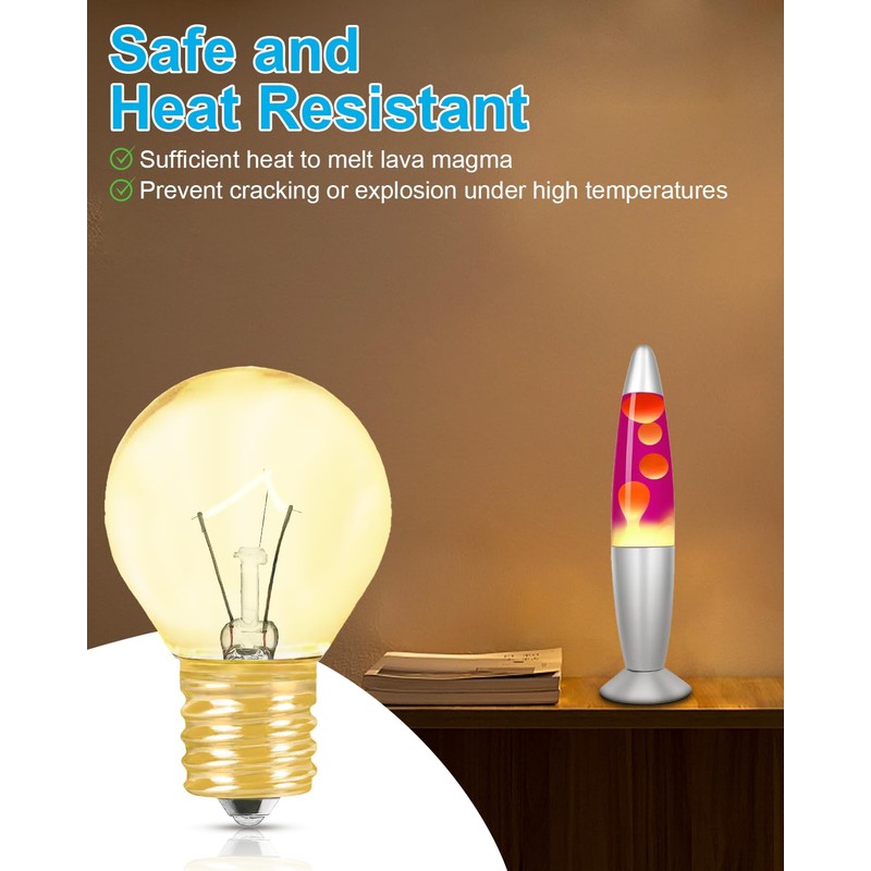 - Multi-functional Compatibility: Our S11 lava lamp bulb seamlessly fits 14.5-inch/20-ounce to 16-inch/26-ounce lava lamps, compatible with all lava shapes. It is also compatible with table lamps, night lights, range hood lights, and other fixtures that use an E17 base. They provide effective and comfortable lighting for various purposes