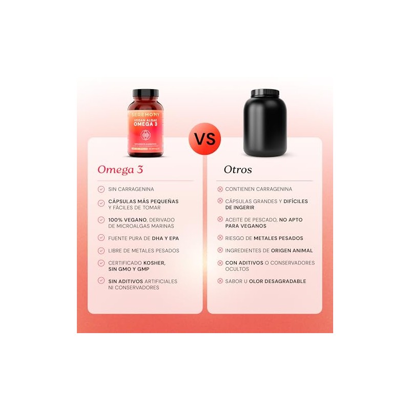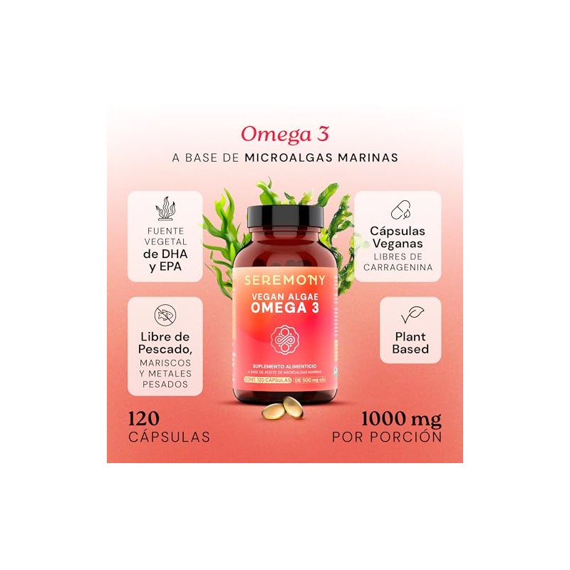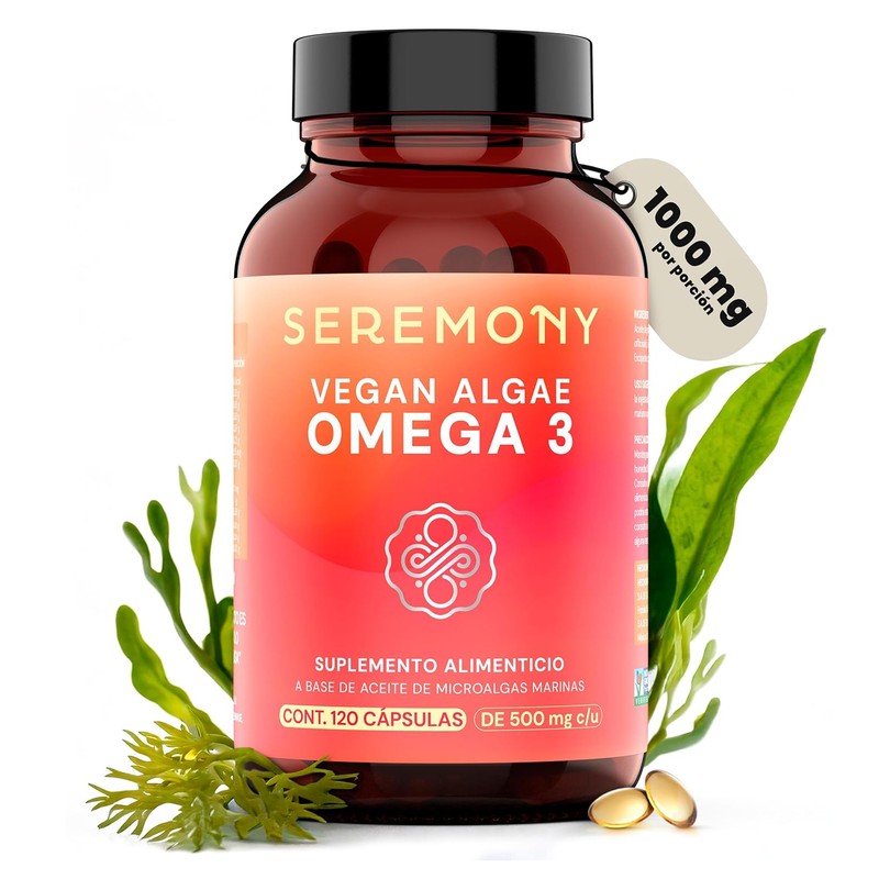 🌟 ⭐ SEREMONY - Omega 3 Vegano a Base de Aceite de Microalgas Marinas - Con DHA 340 mg y EPA 200 mg por Porción - 120 Cápsulas - 60 Porciones - Suplemento Alimenticio ⭐ 🌟