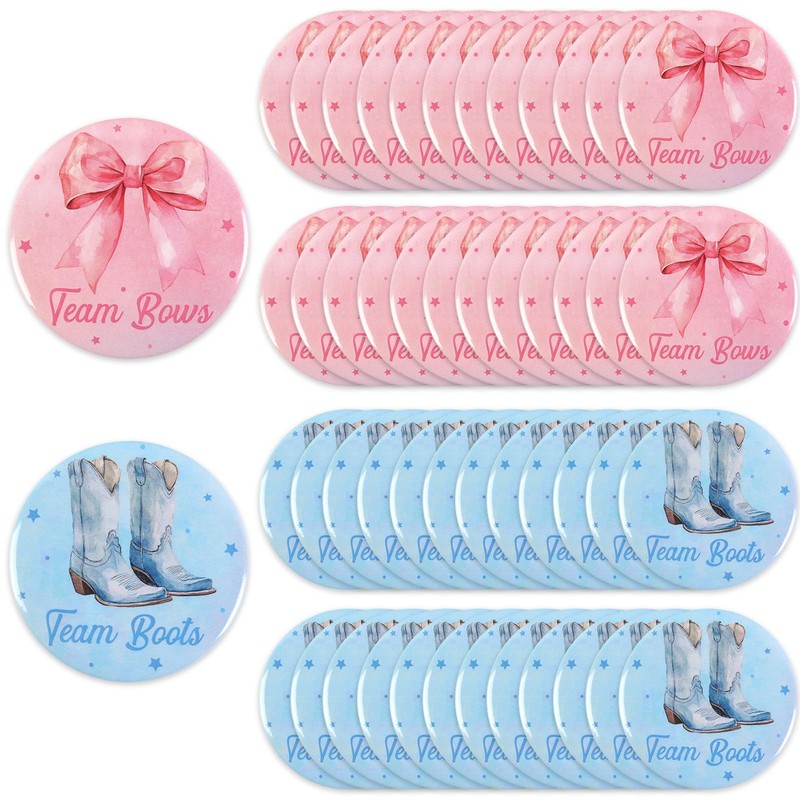 Serencatcher 48pcs Bows or Boots Gender Reveal Party Buttons Bows or Boots Gender Reveal Party Favors Team Bows and Team Boots Button Pins for Bows or Boots Gender Reveal He or She Supplies