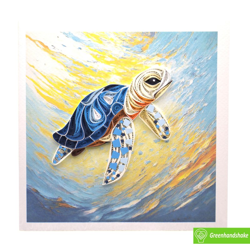 Serene Sea Turtle Journey, Quilling Card 3D - Unique Dedicated Handmade, Design Greeting Card for Birthday, Valentine's Day, Mothers Day, Spring, Fathers Day, Graduation, Wedding, Anniversary, Thank