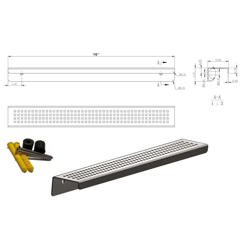 - High Quality Materials: No Corrosion and Rust. NO Plastics. The SereneDrains wall shelf is made of 316 stainless steel. Pickled-Passivated and Electro-Polished for maximum durability in humid conditions.
