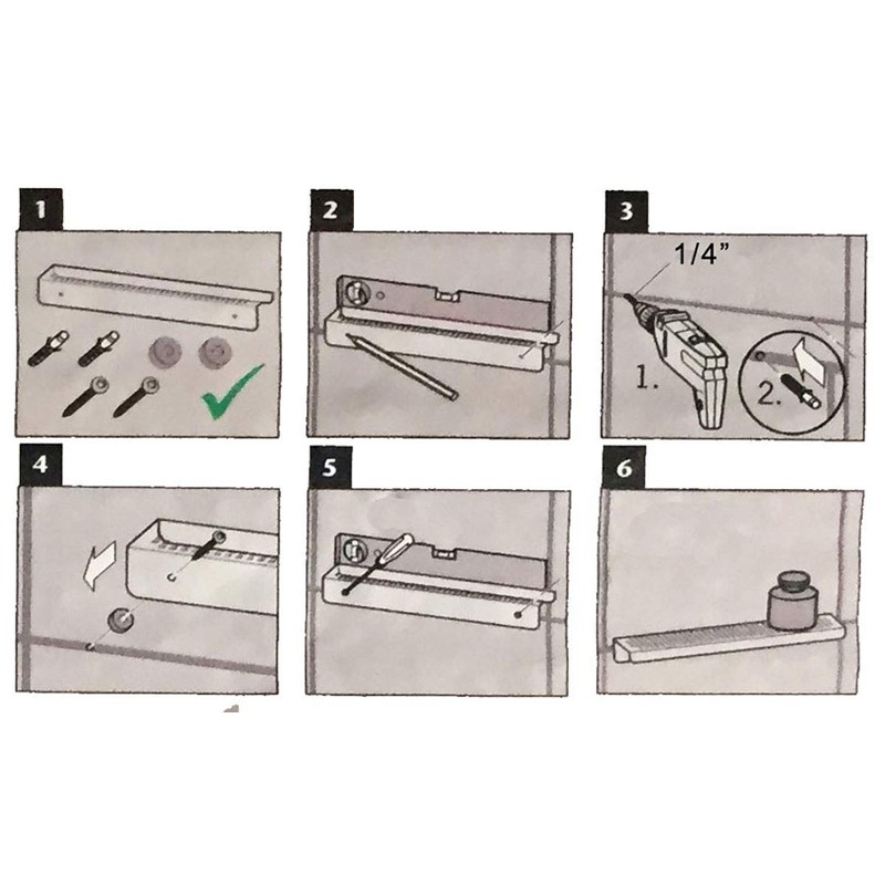 - Easy To Install: The SereneDrains shower shelf is optimized for easy installation. Hardware Included (2 washers, 2 fasteners, 2 stainless steel 2 ¼” screws). Instructions in product description.