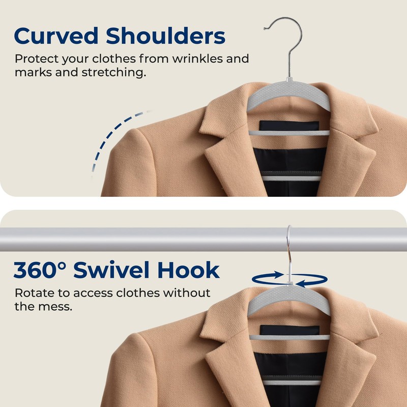 - NO MORE SLIPPERY CLOTHES – Non-slip shoulder grooves keep shirts, dresses, jackets, and pants securely in place without falling, making it easy to maintain an organized, tidy closet.