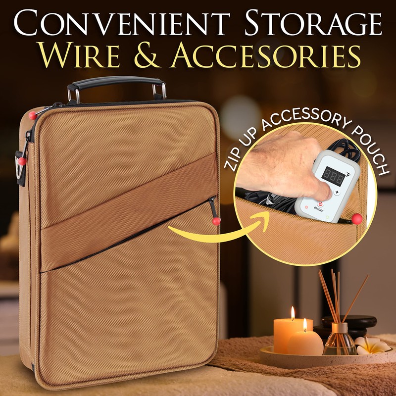 - STONE HEATING TRAVEL BAG: The electric hot stone massage warmer set comes with a lightweight energy efficient stylish storage / travel bag case that doubles as stone heater oven that quickly heats up the rocks within 20 mins
