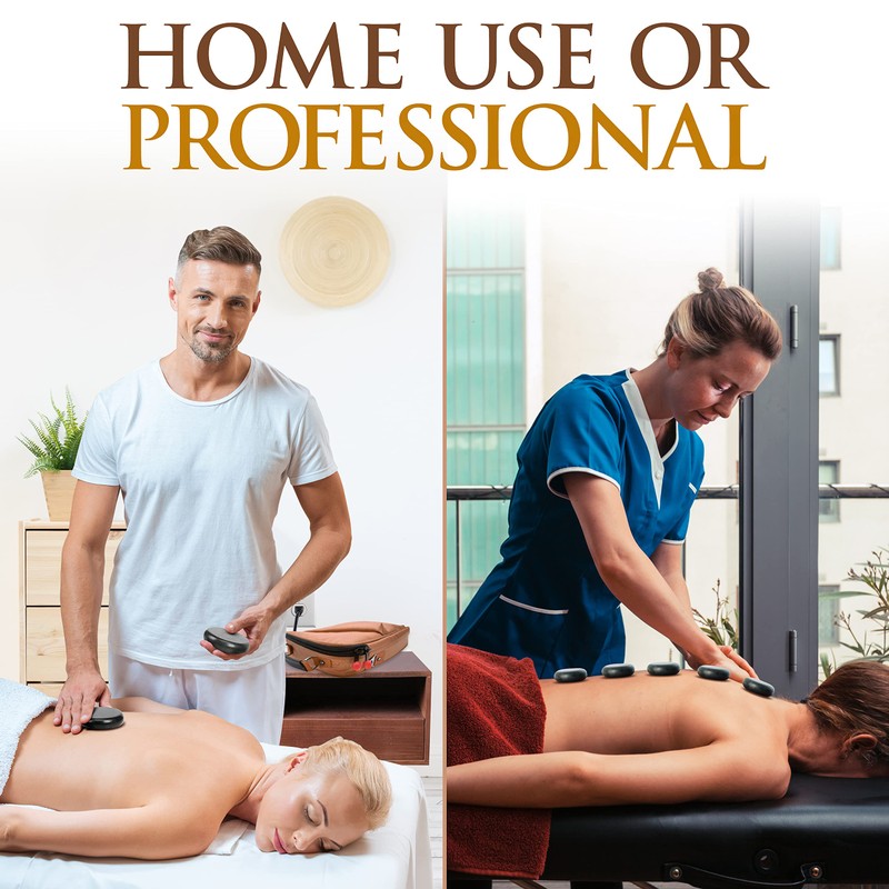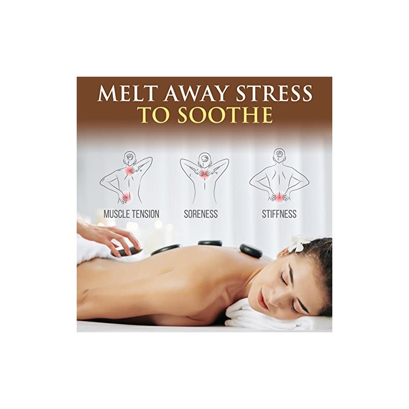 - THERAPEUTIC RELIEF: The heated stone therapy massager set relieves pains caused by sprains and strains, melt away stress to soothe muscle tension, soreness, and stiffness and it is also Ideal for athletes, home care and therapeutic spa centers