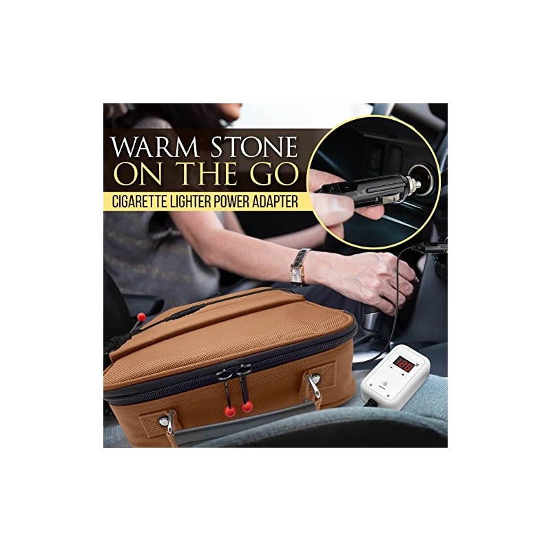 - CAR ADAPTER AND WALL PLUG: Warm the stones while on the go or plug into the wall. This all-in-one package comes with a car lighter power adapter and power cable, a hot stone heating bag, digital temp controller and 6 large 6 small massaging stones