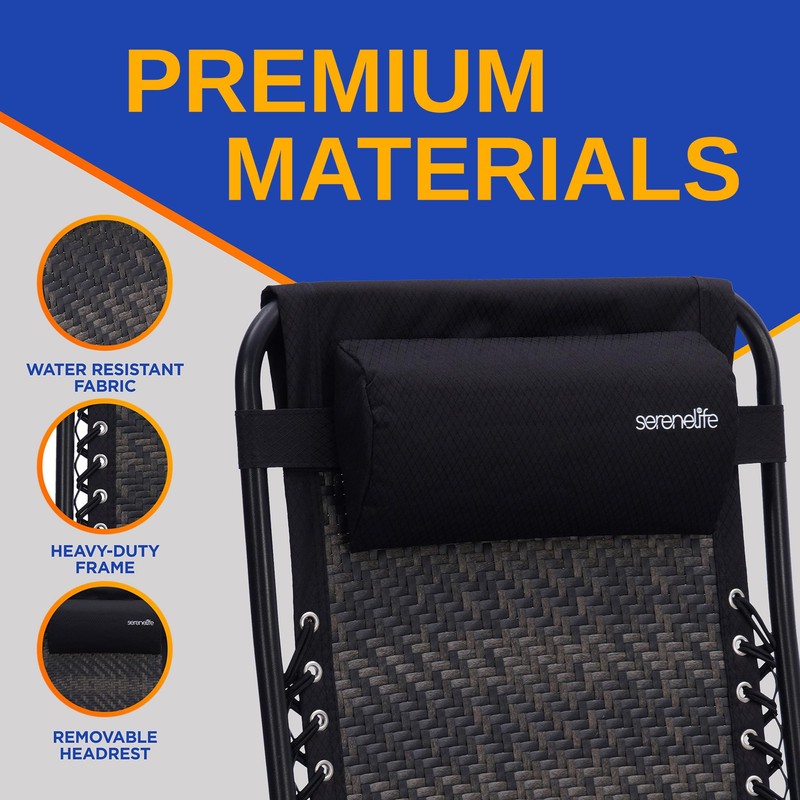 SereneLife SL1ZRC88.5 Outdoor Foldable Rattan Zero Gravity Lawn Chair-Adjustable Recliners with Plastic Cup Holder Side Table and Pillow, Off Black