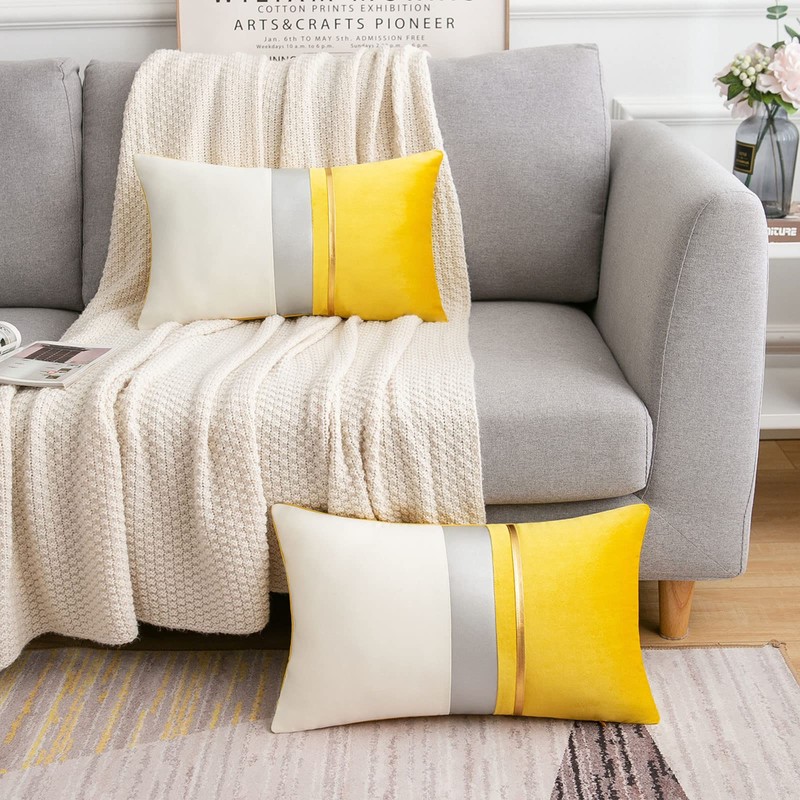 - Material: Luxury velvet, the cushion cover with gold and silver grey leather , feeling soft and comfortable, bringing luxurious design and chic style to your living room.