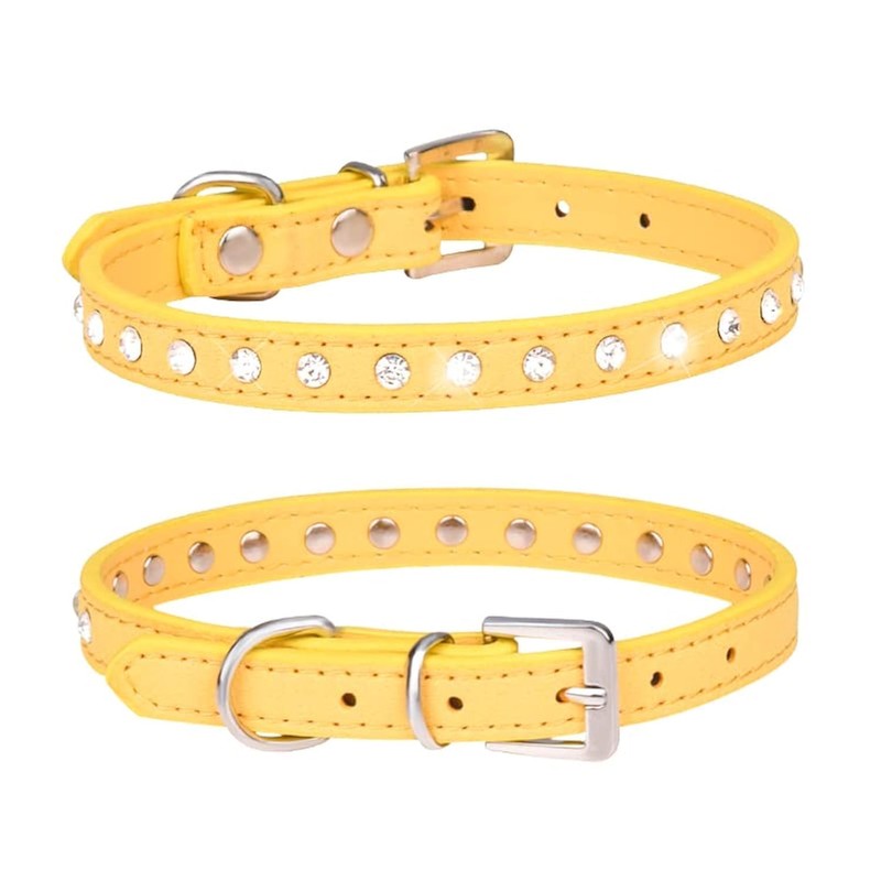 Serijoars Puppy Dog Collar with Crystal Diamond Colorful Bling Girl Puppy Small Dog Cat Collars (XS, Yellow)