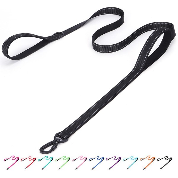 Serijoars Reflective Nylon Dog Leash - Heavy Duty Padded Two Handle Reflective Leash for Night Safety Training for Small Medium Large Breed Pet Dogs (Black, 6FT×1'')