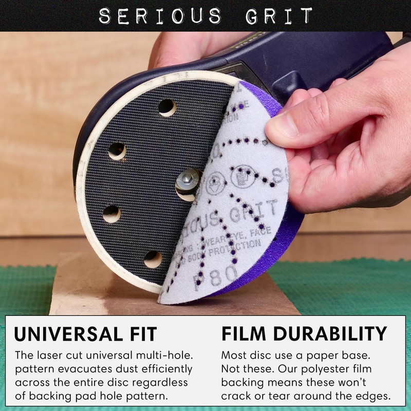 - Tear-Resistant Film Backing: The durable film backing offers greater flexibility and resistance to tearing, ensuring the disc stays intact, even during the toughest sanding applications.