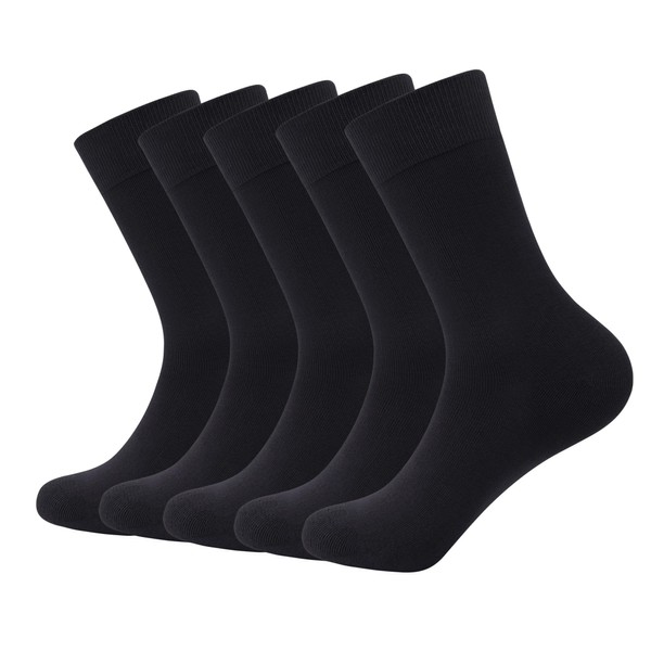 SERISIMPLE Viscose Bamboo Dress Men Sock Thin Soft Crew Anti Odor Lightweight Sock Breathable Comfort Cool soft Sock 5 Pairs (US, Alpha, X-Large, Regular, Regular, Black)