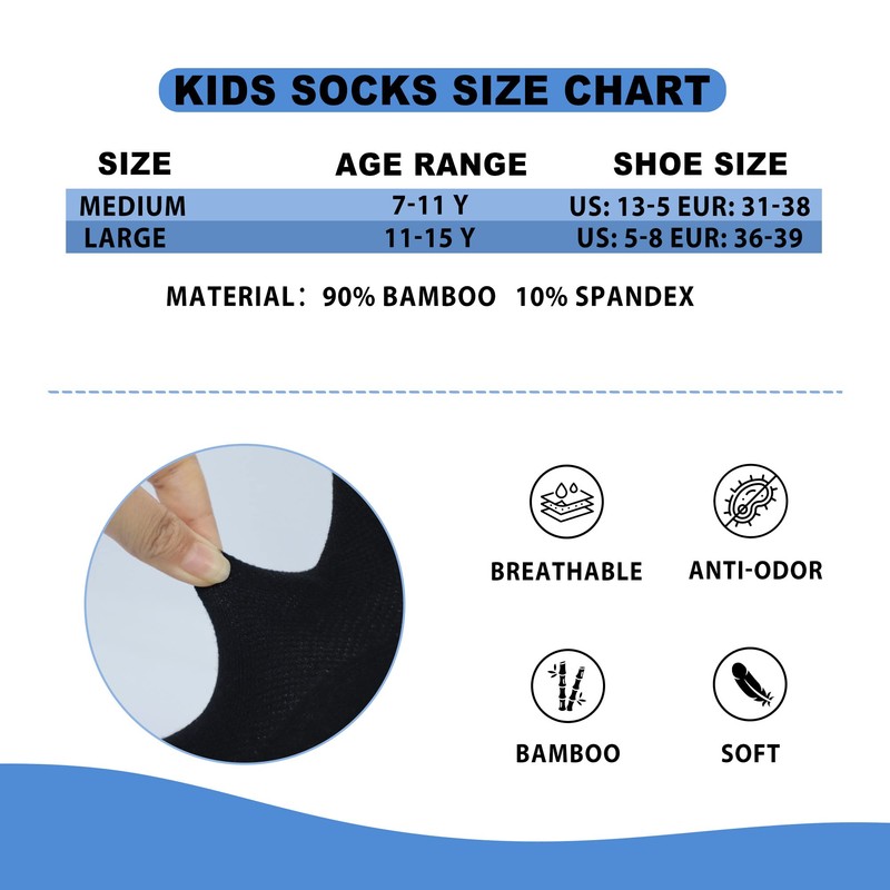 SERISIMPLE Viscose Bamboo Mesh Kids Low Cut Socks Unisex Child Ankle Athletic Socks Non Slip Breathable Boy Girl 5 Pairs (as1, alpha, m, regular, Black)