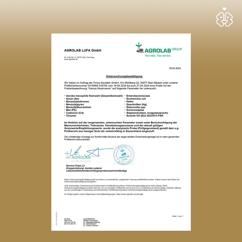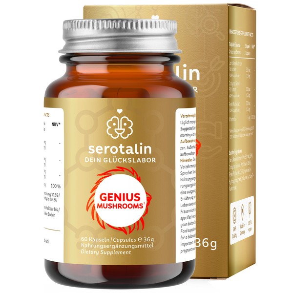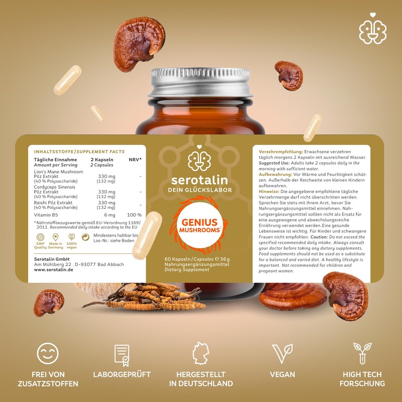 serotalin Genius Mushrooms Complex Cordyceps I Lion's Mane I Reishi I 60 Mushroom Complex Capsules High Dose & No Additives | German Production & Laboratory Tested I Vegan
