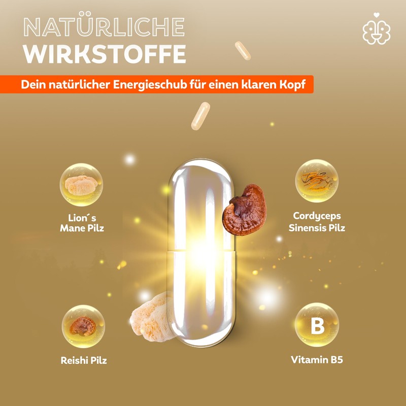 - Vitamin bomb – provided with vitamin B5, the Genius mushroom complex capsules support your energy metabolism and contribute to the reduction of fatigue.