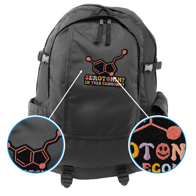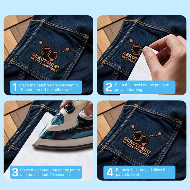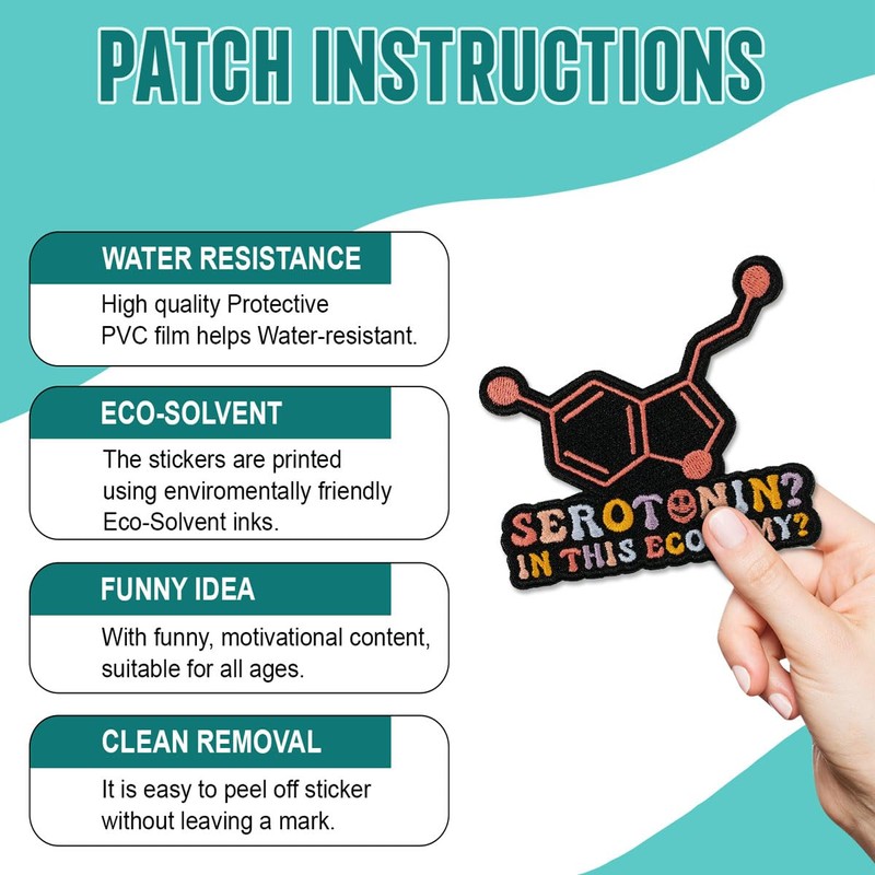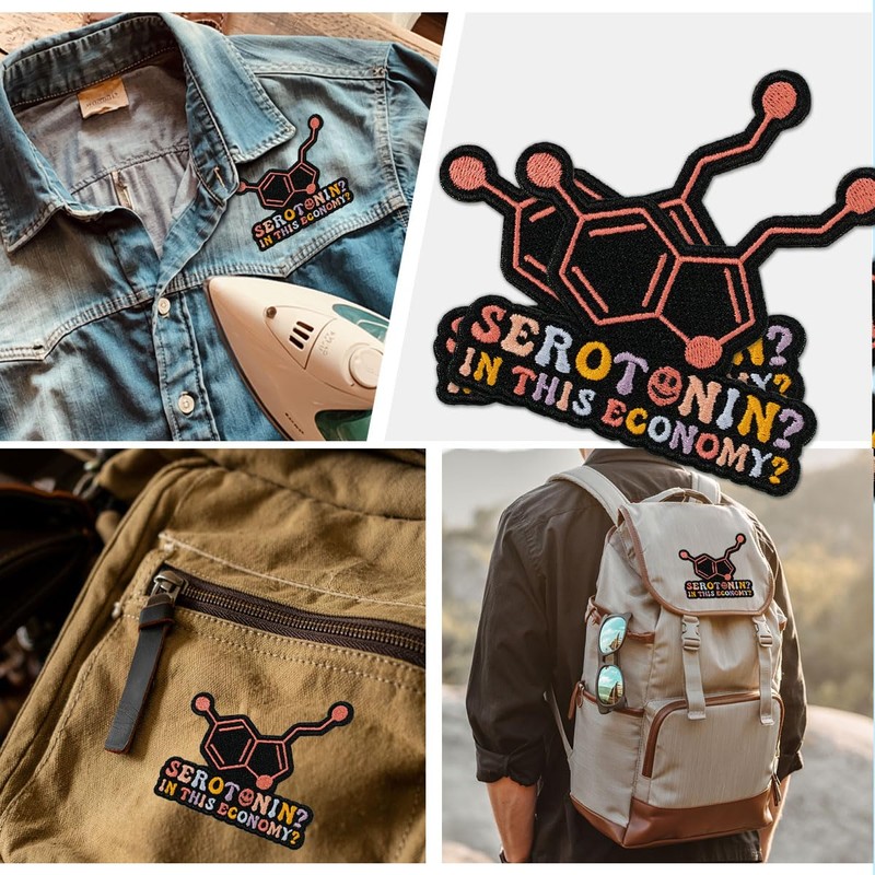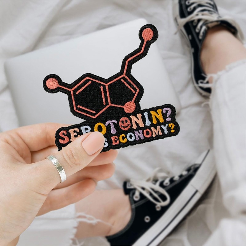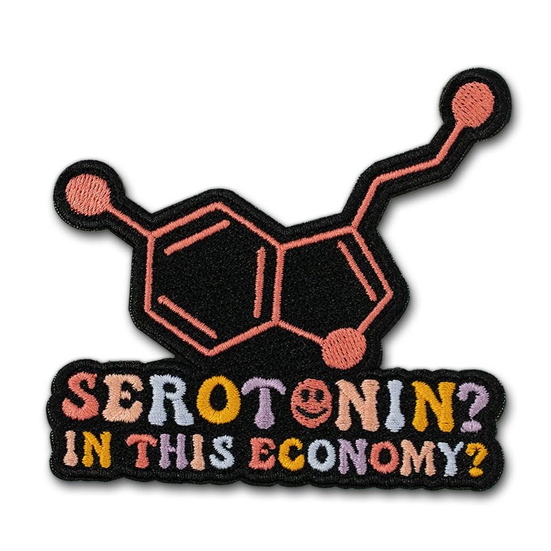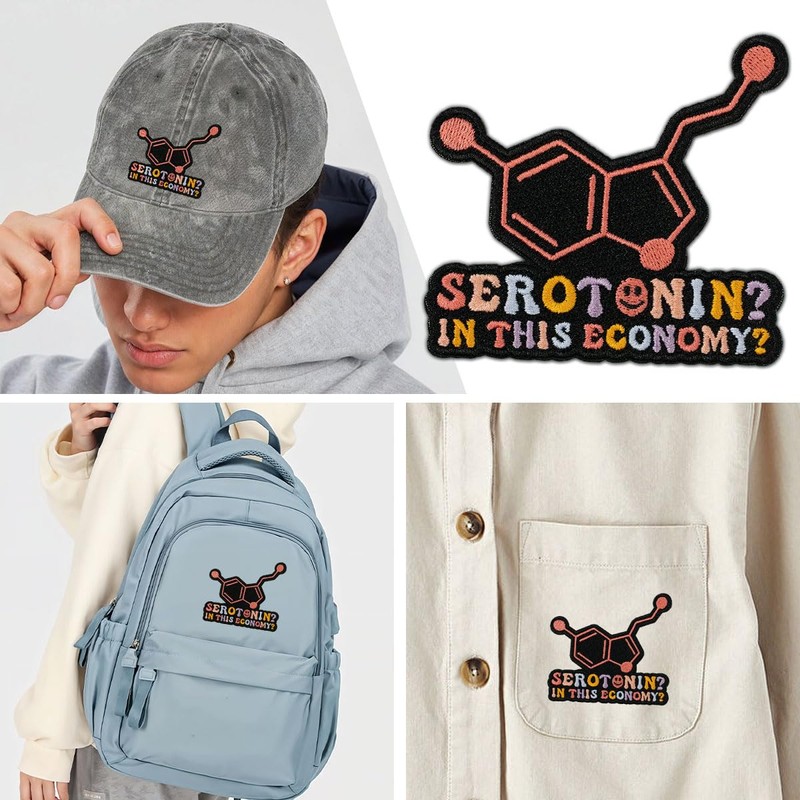 Serotonin in This Economy Patch Funny Meme Brain Mental Health Humor Sarcastic Joke Gift Serotonin in This Economy Embroidery Patches for Clothes Backpacks Hats Bags Iron On Sew Embroider Patch 3"