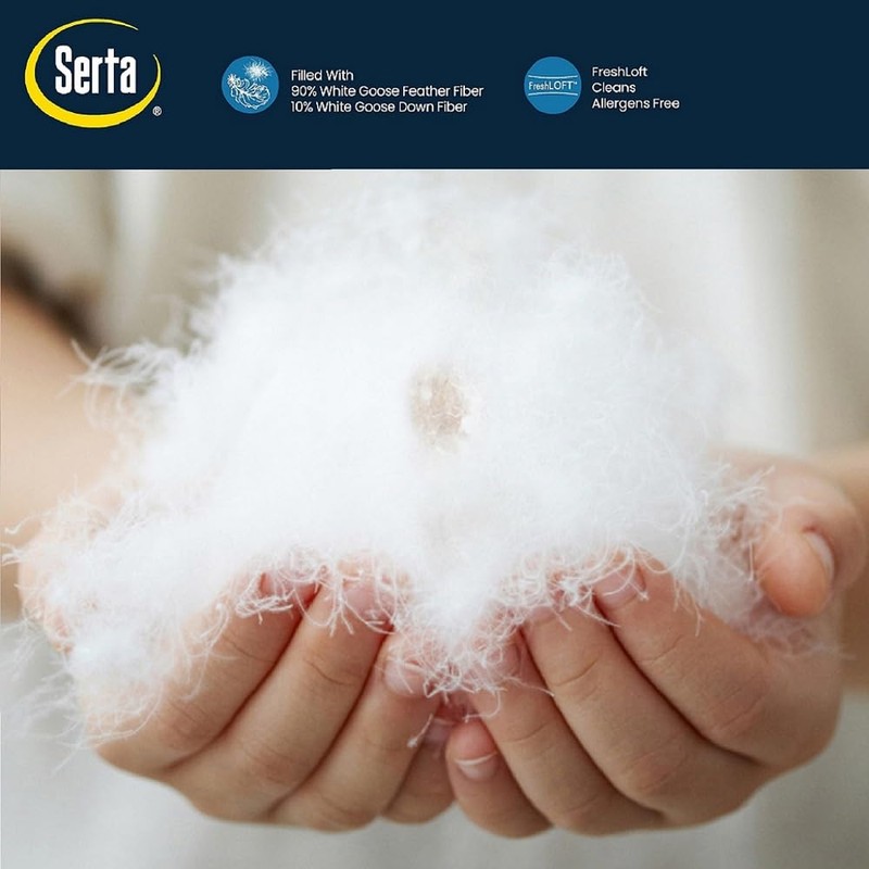 • SERTA FEATHER DOWN PILLOWS: Serta pillows filled with hypoallergenic 90% white goose feather and 10% White goose Down Fiber fill leaving it comfortable and supportive.