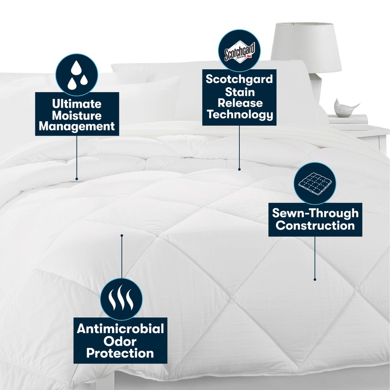 - EMBEDDED TECHNOLOGY - Scotchgard Stain Release & Antimicrobial Order Protection prevent order causing bacteria to keep your comforter free of stains and smelling fresh for longer periods in between washes!