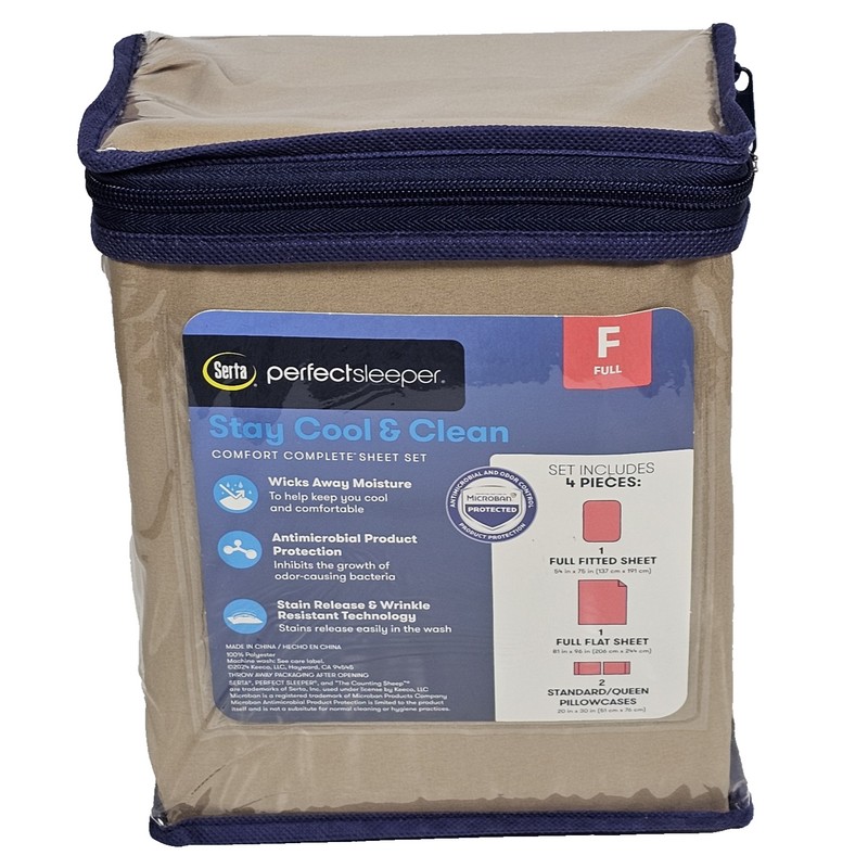 Serta Perfect Sleeper Stay Cool & Clean Full Complete Sheet Set 4pc Beige Tan. Brand New in Package. Please see All photos.