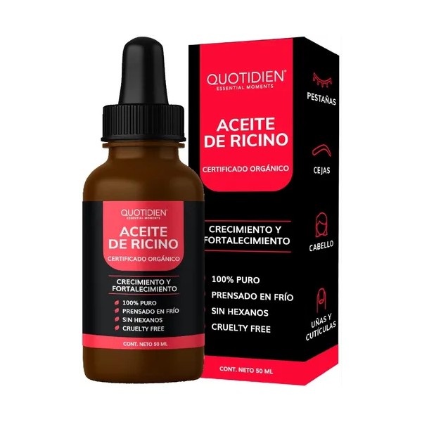 Descubre el Aceite de Ricino Quotidien, 100% puro, orgánico y prensado en frío, diseñado para rejuvenecer pestañas, cejas, cabello, uñas y cutículas. ¡Sin químicos, sin crueldad animal y hecho en México! 🇲🇽