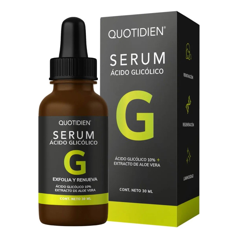 Serum Acido Glicolico 10% Quotidien + Aloe Vera + Glicerina | Exfoliación Efectiva | Antienvejecimiento | Líneas De Expresión | Ideal Todo Tipo De Piel - 30ml