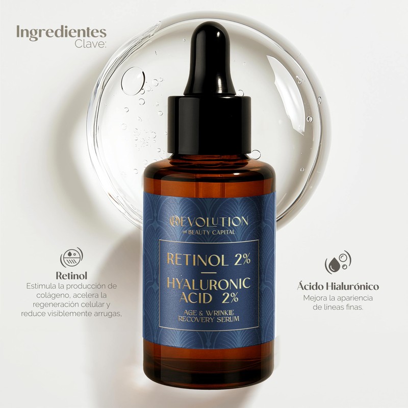 Sérum Antienvejecimiento con Retinol 2% y Ácido Hialurónico 2% | Reduce Visiblemente Arrugas, Líneas de Expresión y Manchas | Estimula la Producción de Colágeno y Mejora la Firmeza de la Piel | Hidrata Profundamente | 30ml | Revolution The Beauty Capital