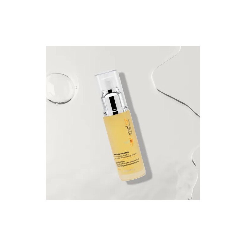 SODIMEL Suero Facial Antioxidante es un suero de textura ligera que se puede usar en la rutina de día y de noche para proteger y reparar la piel del estrés oxidativo, causado por la contaminación ambiental y el envejecimiento de las células.
