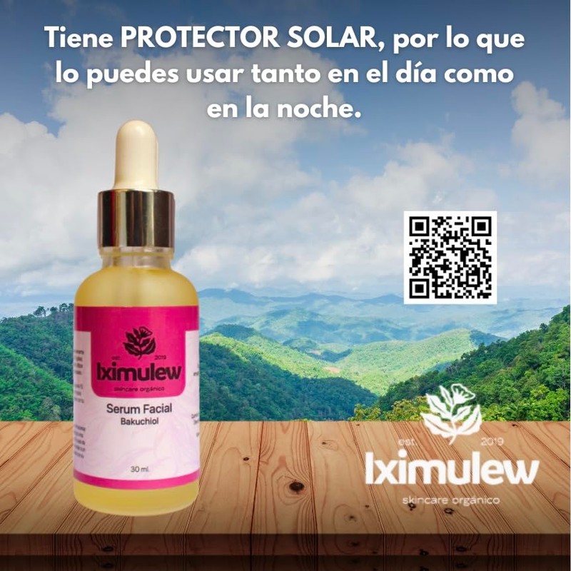 Serum Facial Bakuchiol Iximulew para Alisamiento de la Piel y Luminosidad en Rostro y Cuello (30 ml)