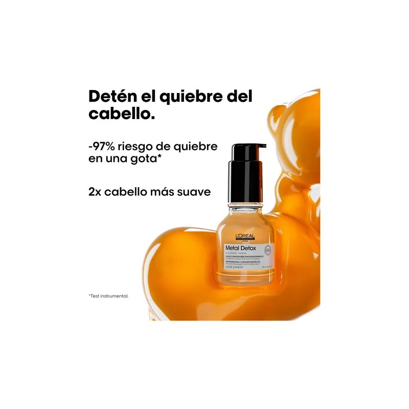 Aceite Metal Detox protege la fibra capilar de los depósitos de partículas después de servicios de coloración, balayage o decoloración. La presencia de metal en la fibra capilar puede incrementar el riesgo de quiebre y afectar negativamente los resultados de dichos servicios. Con su uso, el cabello se vuelve instantáneamente más suave y nutrido.