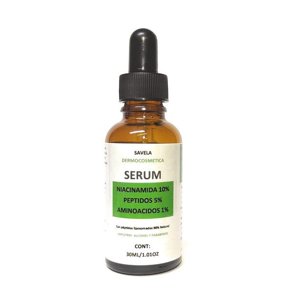 SAVELA - Serum Niacinamida 10%, Peptidos 5% y Aminoacidos 1%, 30ml, Hidratante, Reduce y Previene signos de la edad