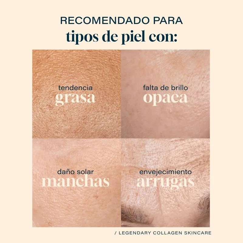 • Funciones: Hidratante, Aclaradora, Antiarrugas, Antiedad, Antimanchas, con Colágeno y Elastina
