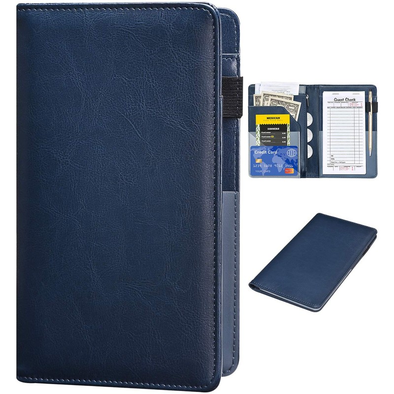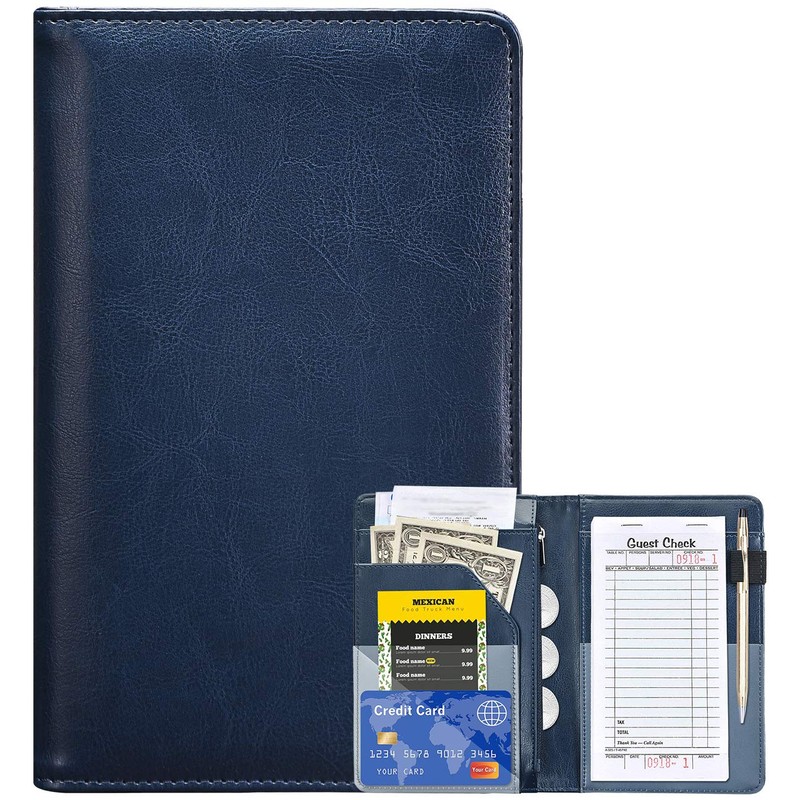 Server Books for Waitress - Leather Waiter Book Server Wallet with Zipper Pocket, Cute Waitress Book&Waitstaff Organizer with Money Pocket Fit Server Apron(Classic Blue)