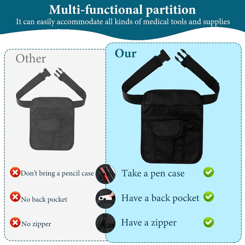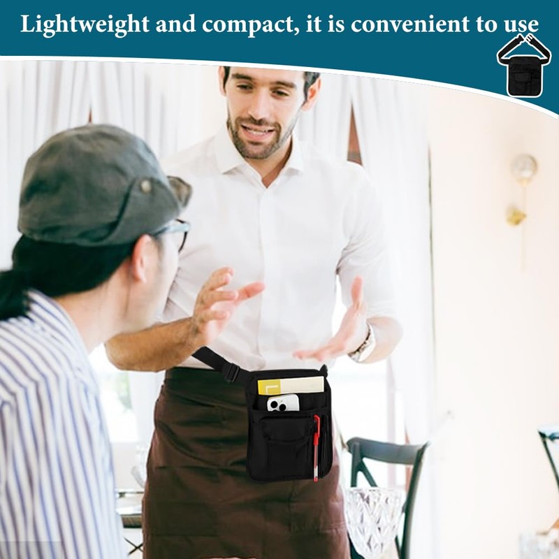 - Durable Materials: Crafted from sturdy oxford materials, this server pouch is built to last. Its wear-resistant and washable construction ensures longevity, while its practical design accommodates a range of items like walkie-talkies, mini i'Pads, pencils, cash, and more, making it indispensable for busy service environments.