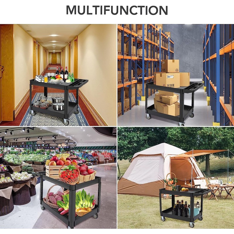 - 🎁PERFECT FOR THE HEAVIEST LOADS - This service cart with wheels is perfect for transporting materials, supplies, and heavy loads in almost any environment. Structural foam provides more durability than other materials, offering 500 pounds of total storage weight capacity, with 250 pounds per shelf.