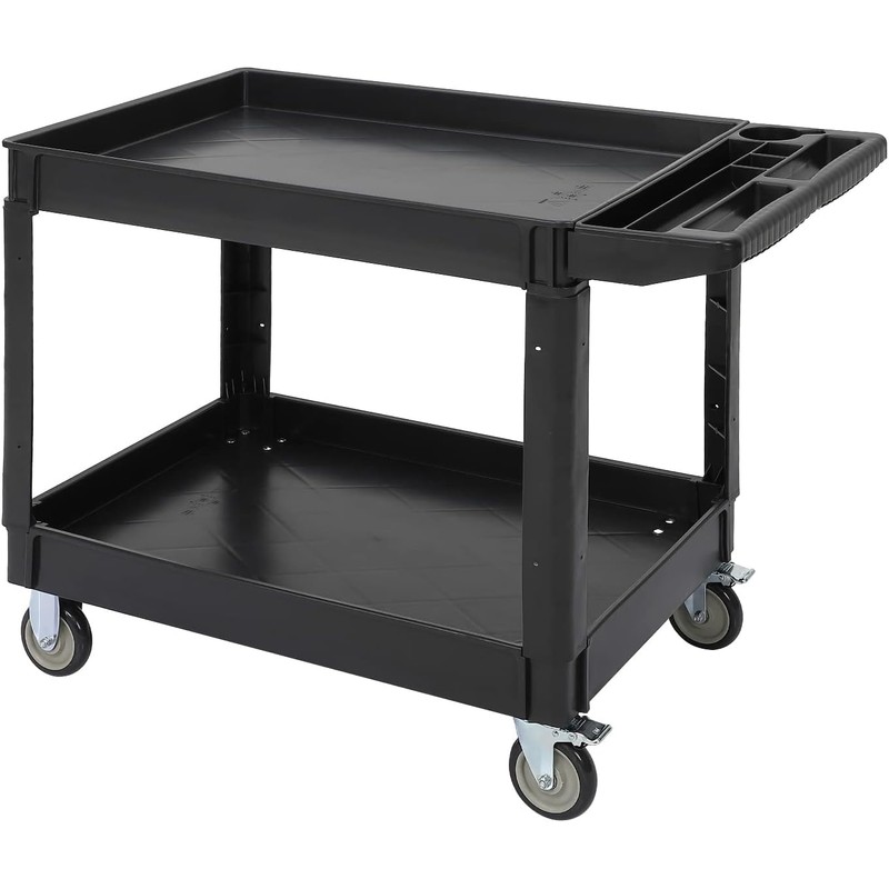 Service Cart 2-Shelf, Storage Handle, 500 lbs Capacity, for Warehouse/Garage/Cleaning/Manufacturing,45"X25"