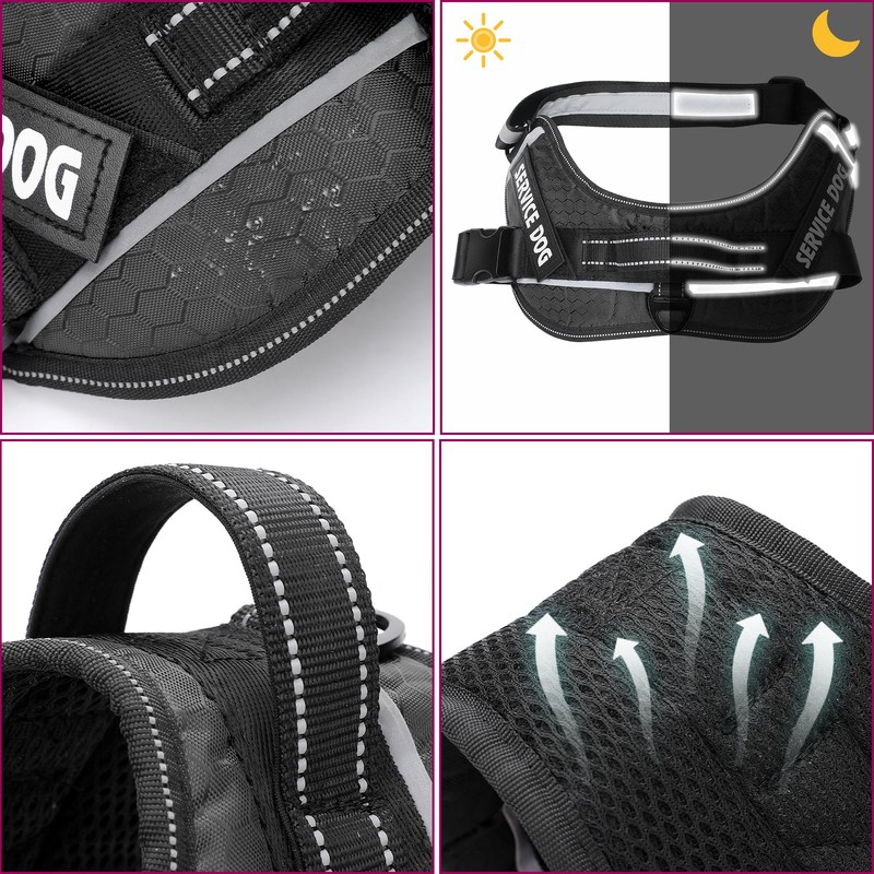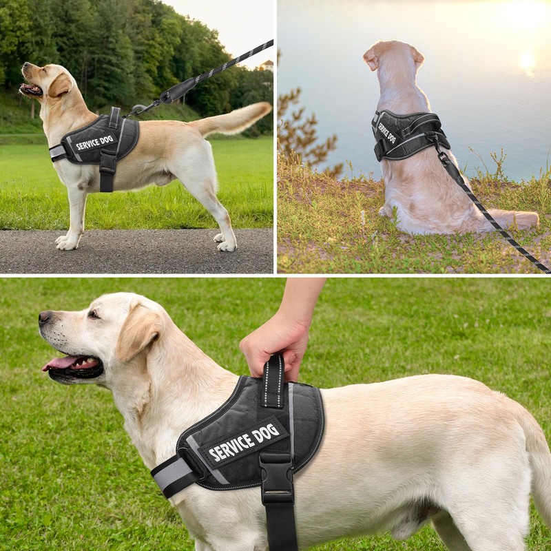 - SAFETY FIRST: Our service dog harness is made of high-quality and sturdy nylon material, which is not easy to tear and provides ultimate durability for the safety of your puppy. The improved padded handle and reflective material have increased visibility, and you can believe that we will prioritize the safety of your dog in all your walks