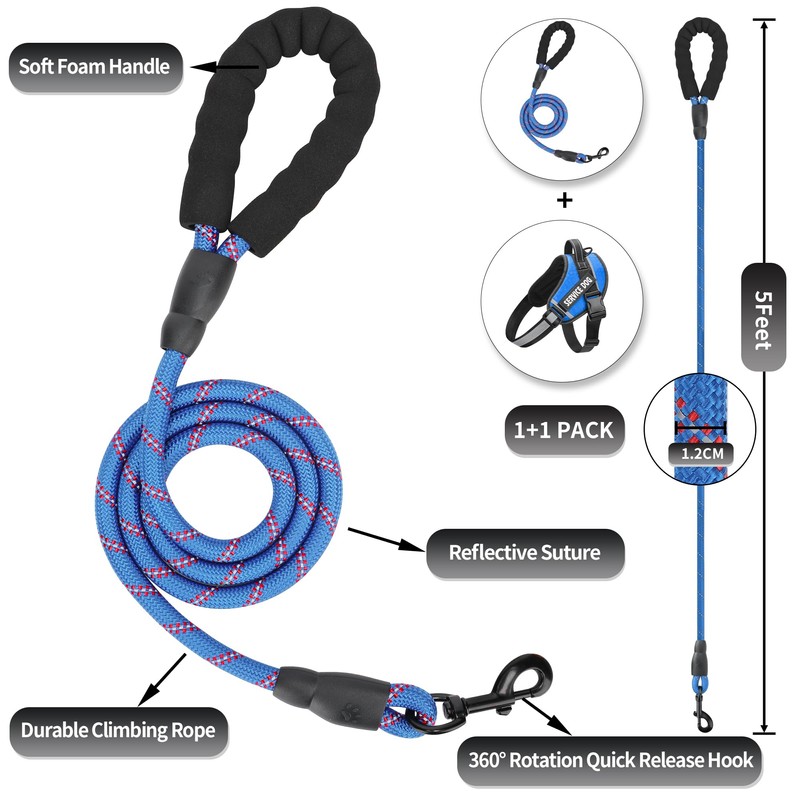 - WHAT WILL YOU GET: The dog harness set comes with a service dog harness, a 5-feet dog leash, and 10 bright Velcro patches such as "DO NOT PET", "IN TRAINING", "THERAPY DOG", "SERVICE DOG", and "EMOTIONAL SUPPORT". You can apply 2 patches at a time to express your dog's personality and emotions, or display useful information on your dog harness