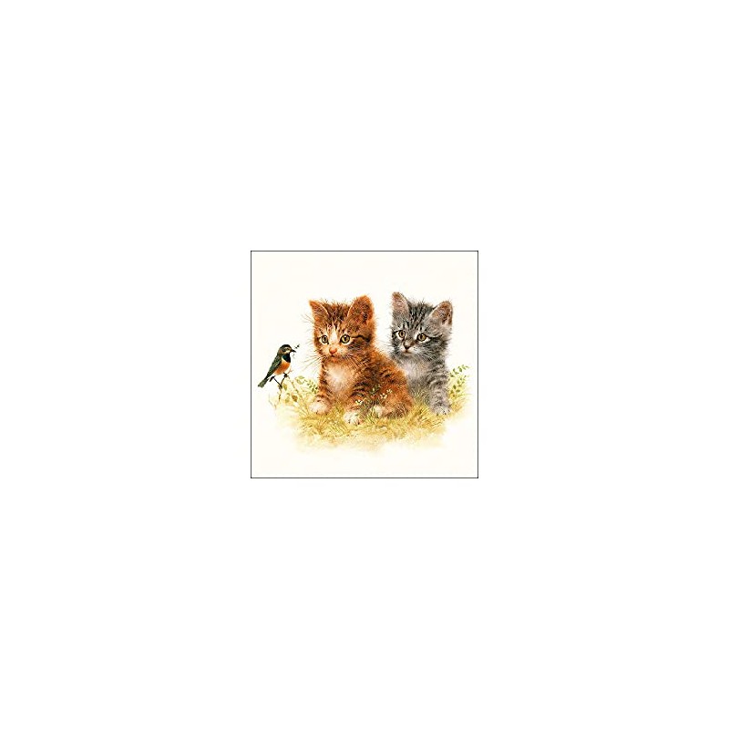 Classic napkin 33 x 33 cm with two kittens and robins for making pretty decorative objects using decoupage technique. All four napkin parts can be used individually.