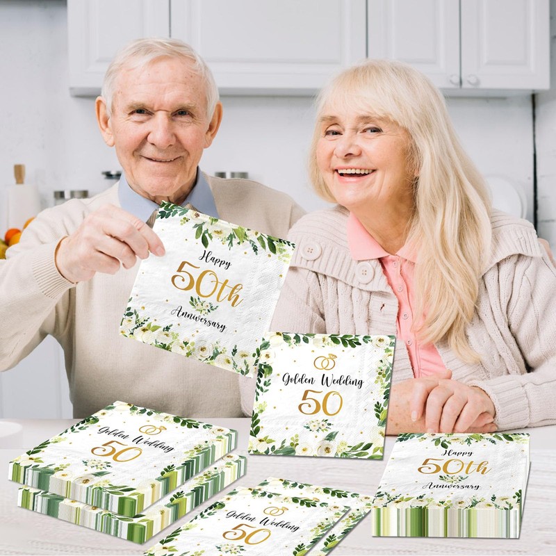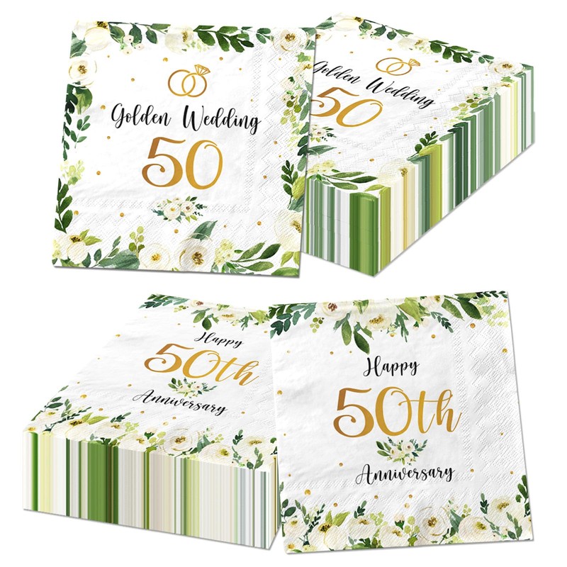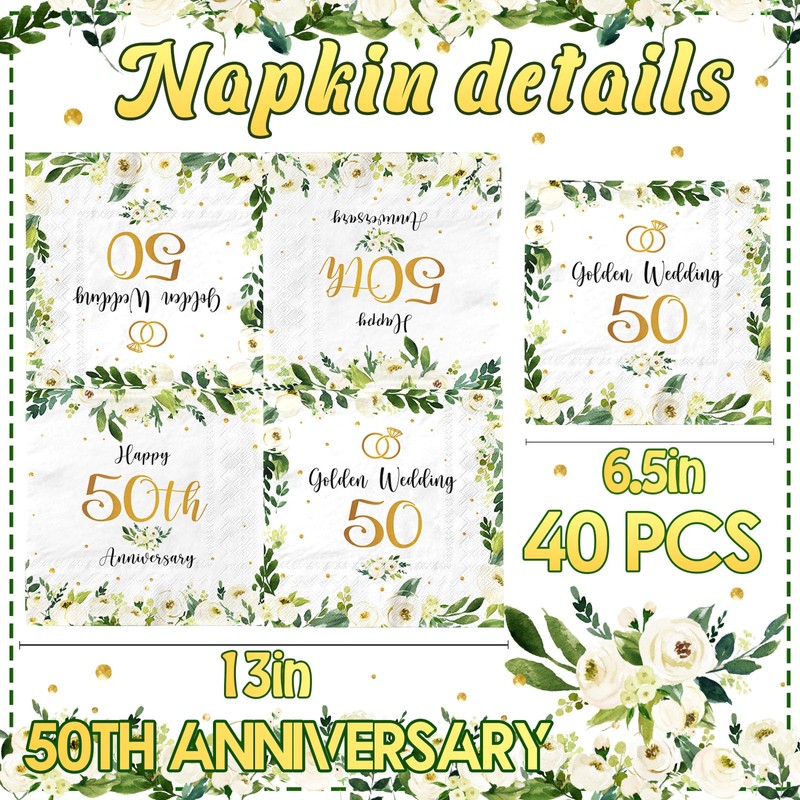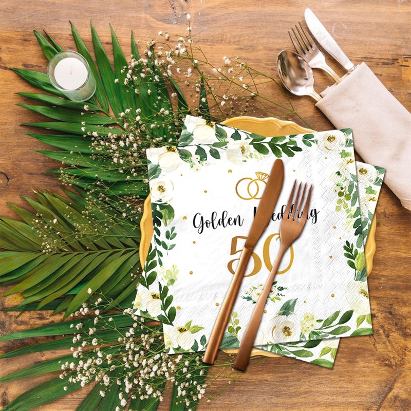 • 💗【Amplia aplicación】Estas servilletas florales felices del 50 aniversario son buenas para bodas, celebraciones del 50 aniversario, 50 aniversario de boda. Adecuado para envolver y almacenar platos, servilletas, tenedores y posavasos. Haz que tu fiesta sea más atractiva