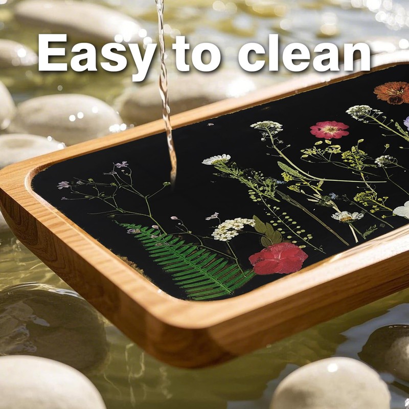 - Premium Quality Materials: Crafted from durable resin and sustainable natural bamboo, this tray combines beauty with longevity. The use of real flowers ensures each piece is one-of-a-kind, making it a perfect gift for friends and family who appreciate unique home décor