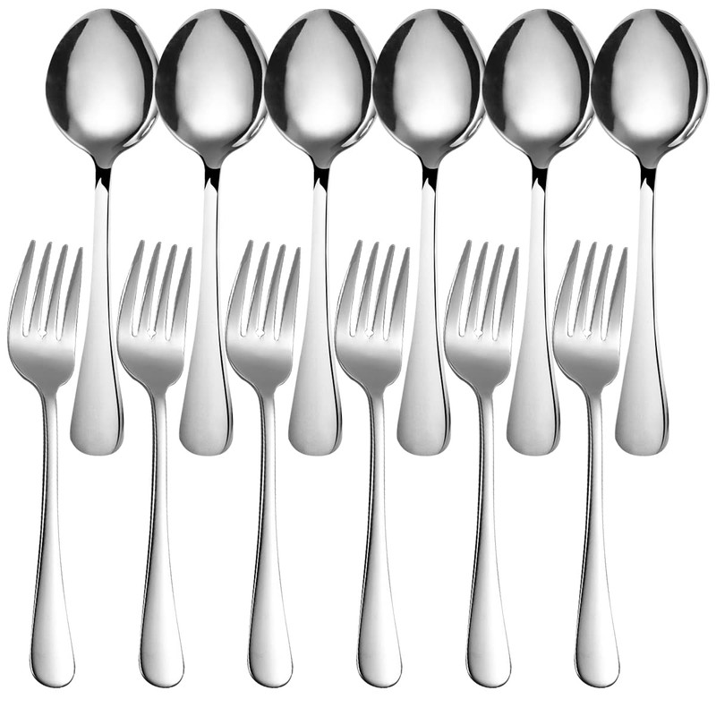 - 【Large serving 6 spoons 6 forks】12 Pieces stainless steel cutlery.6 spoons & 6 forks are suitable for as a shared tableware,group meal service,buffet service,restaurant service.