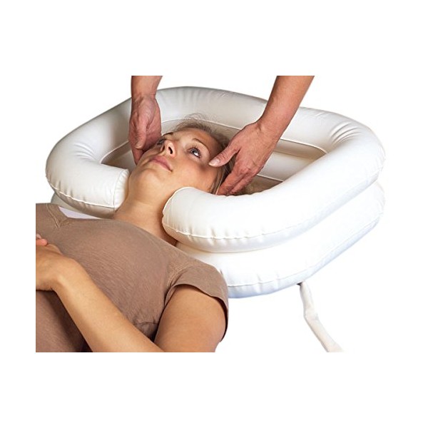 - This inflatable pool has a particularly large volume and allows safe hair washing.