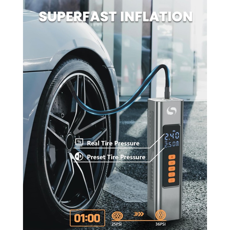 - PERFEKTE WAHL: Überraschen Sie Ihre Freunde und Familie mit der elektrischen Luftpumpe SM04, die Ihnen auch unterwegs ein guter Freund sein wird.